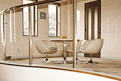 柔らかなピンクの硬質ガラスの全壁面と吹き抜け空間は皆様に開放感とやすらぎを与えるでしょう。 -
